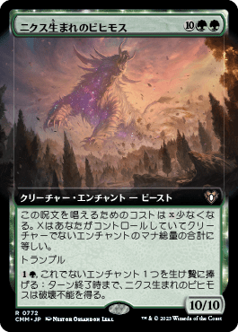 (1)(緑),これでないエンチャント1つを生け贄に捧げる:ターン終了時まで、ニクス生まれのビヒモスは破壊不能を得る。10/10