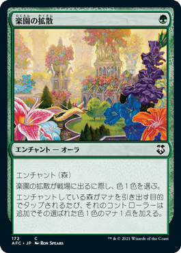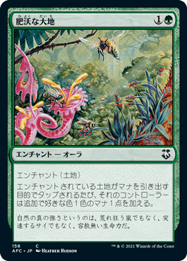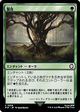 エンチャントされている土地がマナを引き出す目的でタップされるたび、それのコントローラーは追加で(緑)(緑)を加える。