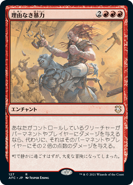 あなたがコントロールするクリーチャーがパーマネントかプレイヤーにダメージを与えるなら、代わりにそれはそのダメージを2倍にしてそのパーマネントかプレイヤーに与える。
