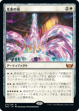 (白)(白)(白)(白)(白),(T),あなたがコントロールしているタップ状態のクリーチャー15体をアンタップする:あなたはこのゲームに勝利する。