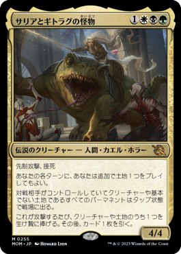 これが攻撃するたび、あなたのライブラリーの一番上にあるカード6枚を見る。あなたはその中から伝説のクリーチャー・カード1枚を追放してもよい。残りをあなたのライブラリーの一番下に無作為の順番で置く。ターン終了時まで、あなたはその追放されているカードを、そのマナ・コストを支払うことなく唱えてもよい。5/4