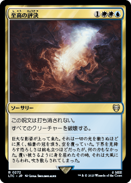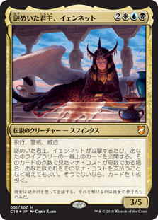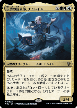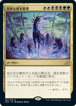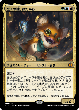 あなたがあなたの手札から伝説の呪文を唱えるたび、マナ総量がそれより小さく伝説であり土地でないカード1枚をが追放されるまで、あなたのライブラリーの一番上から1枚ずつ追放していく。あなたはそのカードをマナ・コストを支払うことなく唱えてもよい。残りをあなたのライブラリーの一番下に無作為の順番で置く。5/5