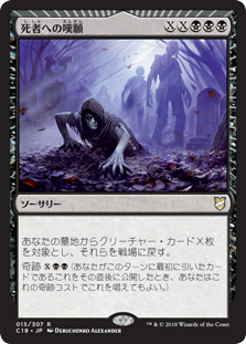 1枚以上のカードがあなたの墓地を離れるたび、黒の2/2のゾンビ(Zombie)・ドルイド(Druid)・クリーチャー・トークン1体を生成する。4/4