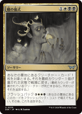 星の病 ― あなたのターンの戦闘の開始時に、墓地にあるクリーチャー・カード最大1枚を対象とする。それを追放する。これによりあなたがカードを追放したなら、黒の5/5のデーモンであることを除き、そのカードのコピーであるトークン1体を生成する。4/4