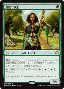 あなたが緑の呪文を唱えるたび、クリーチャー1体を対象とする。ターン終了時まで、それは+4/+4の修整を受ける。5/5