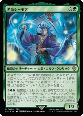 あなたのターンの戦闘の開始時に、あなたがコントロールしていてこれでないクリーチャー1体を対象とする。それの上に老師シーモアのパワーに等しい個数の+1/+1カウンターを置く。