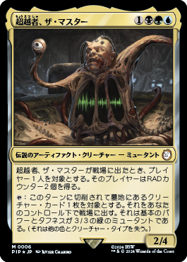 超越者、ザ・マスターが戦場に出たとき、プレイヤー1人を対象とする。そのプレイヤーはRAD(rad)カウンター2個を得る。
