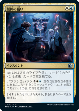 フラッシュバック(1)(白)(青)(あなたはあなたの墓地にあるこのカードをフラッシュバック・コストで唱えてもよい。その後、これを追放する。)