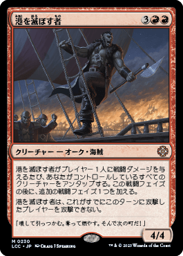 港を滅ぼす者がプレイヤー1人に戦闘ダメージを与えるたび、あなたがコントロールしている各クリーチャーをそれぞれアンタップする。この戦闘フェイズの後に、追加の戦闘フェイズを1つ加える。